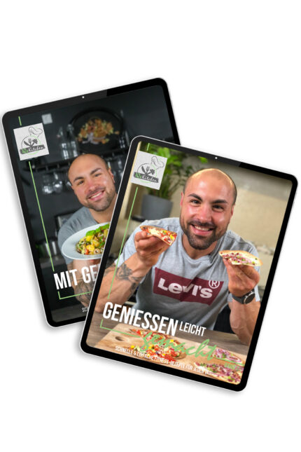 Mit diesem Bundle bekommst Du beide Werke zu einem vergünstigten Preis und insgesamt 120 Rezepte, um für maximale Abwechslung in der gesunden Fitnessküche zu sorgen. Ob Strudel, Kuchen, Pfannkuchen oder selbstgemachtes Brot: Alles ist möglich und ich werde Dir einfache und schnelle Alternativen zeigen, die der klassischen Zubereitung in nichts nachstehen.