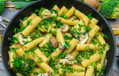Rigatoni mit Pilz-Brokkoli Protein-Sahnesauce | IQs Kitchen
