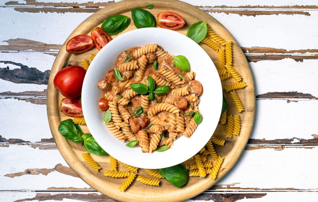 Das Pesto über Nudeln oder einer Beilage eurer Wahl gießen, optional frische Cocktailtomaten und Basilikum dazugeben, gut verrühren und schmecken lassen.