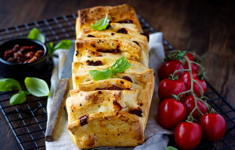 Ich habe auch hier direkt mal ein Grundrezept erstellt, welches ihr nach Belieben abändern könnt. In diesem Fall gab es ein Feta-Basilikum Zupfbrot mit getrockneten Tomaten, aber gegen ein leckeres Bärlauch Zupfbrot hätte ich auch nichts einzuwenden – ihr etwa?