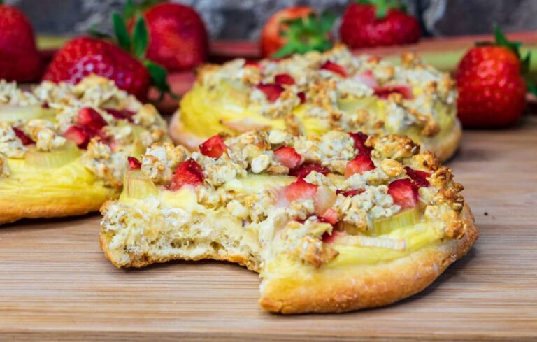 Die Zubereitung ist schnell und einfach, lediglich der Protein Hefeteig muss im Vorfeld vorbereitet werden, sodass er genug Zeit zum Gehen hat. Die fertigen Streuselstückchen könnt Ihr übrigens auch problemlos einfrieren und bei Bedarf kurz in der Mikrowelle oder im Ofen aufbacken. So habt Ihr in Sekundenschnelle einen warmen, ofenfrischen Erdbeer-Rhabarber Pudding Streuseltaler zur Hand und kommt gar nicht erst in Versuchung, zu Süßigkeiten zu greifen.