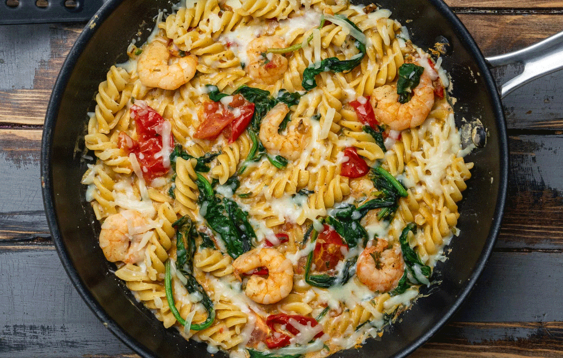 Die Spirelli mit Garnelen und Spinat in Sahnesauce sind der beste Beweis dafür, dass eine gesunde und proteinreiche Ernährung alles andere als aufwendig sein muss.