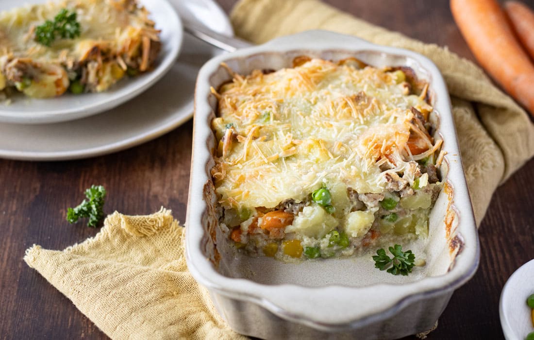 Den Hackfleisch-Mix in die kleine Auflaufform geben und mit der Sahnesauce übergießen. Zuletzt mit etwas Reibekäse toppen und für ca. 20min in den Ofen schieben oder bis der Käse die gewünschte Farbe hat.
